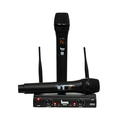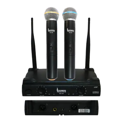 MICROFONO INALAMBRICO UHF, 2 CANALES, DE MANO, FRECUENCIA 512 - 537.50 MHZ