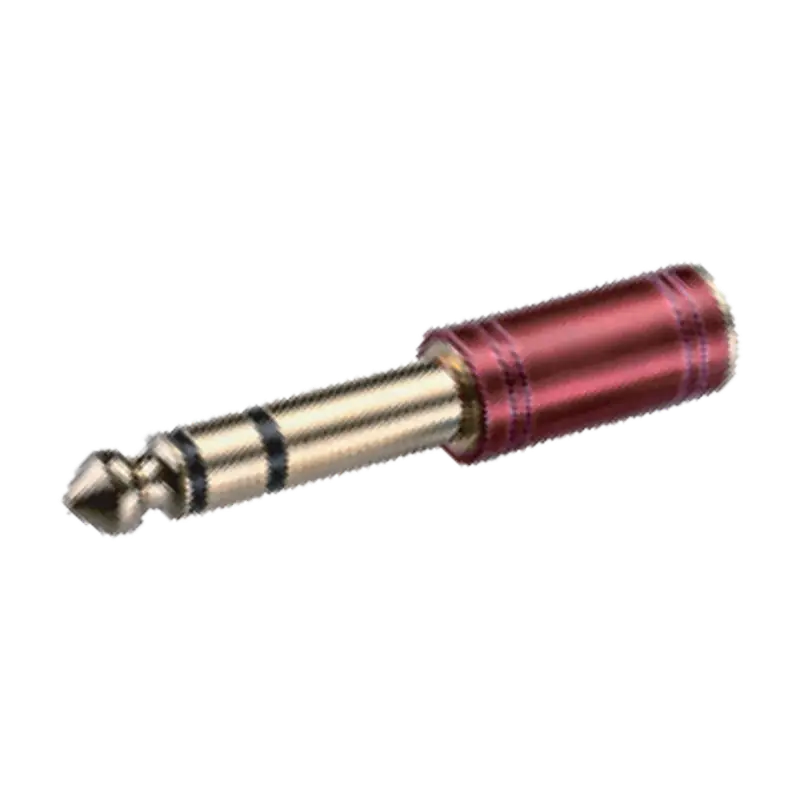 Adaptador de audio estéreo de alta calidad, diseñado para una interconexión segura y eficiente entre dispositivos con conectores de 3.5mm y 1/4". Ideal para uso profesional en estudios y eventos en vivo.