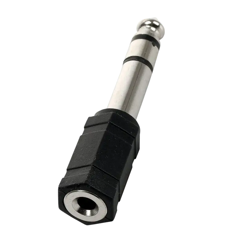 Adaptador de audio PA162, diseñado para convertir conectores jack de 3.5mm a 6.3mm estéreo, ideal para aplicaciones profesionales en estudio y en vivo.