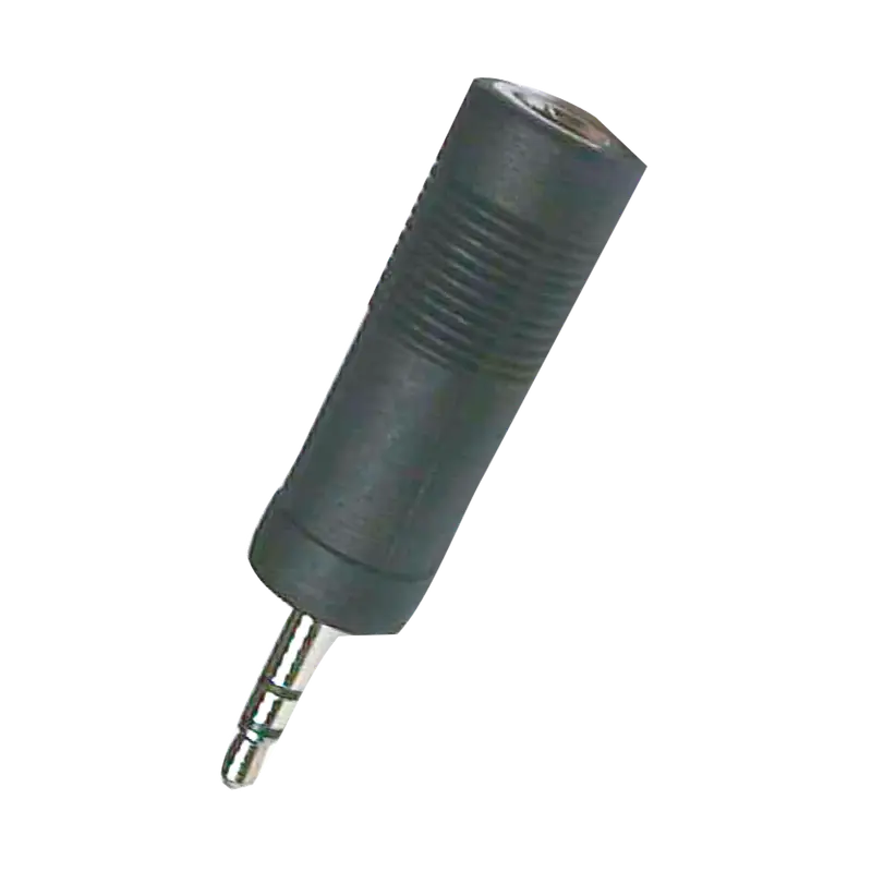 Adaptador de audio estéreo PA163, ideal para interconectar dispositivos con jack de 1/4" a 3.5mm, diseño compacto y robusto, perfecto para uso profesional en estudio y en vivo.