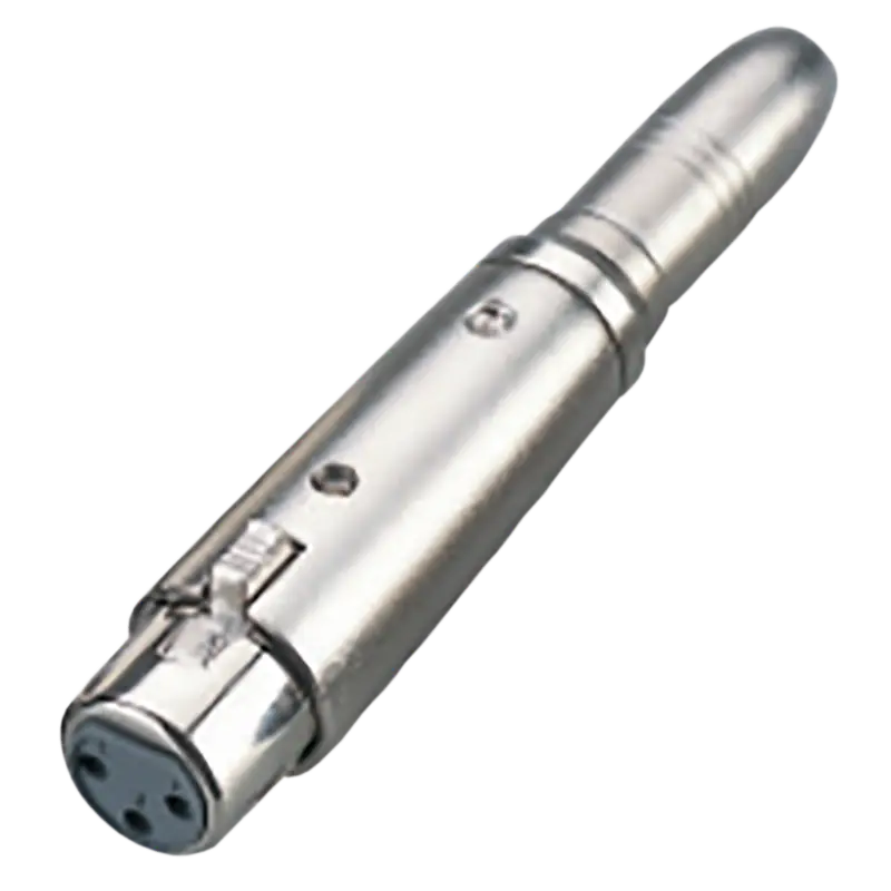 Conector XLR a Jack 1/4" en aleación de zinc niquelado, ideal para sistemas de sonido y equipos de grabación.