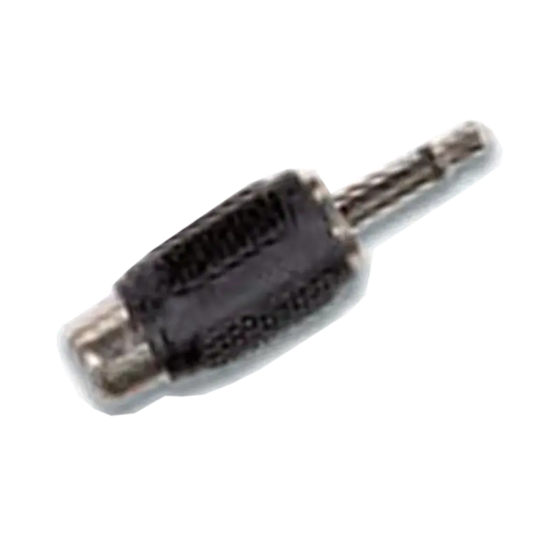Conector RCA a plug de 3.5mm monofónico, fabricado en metal robusto, ideal para transmisión de señales de audio.