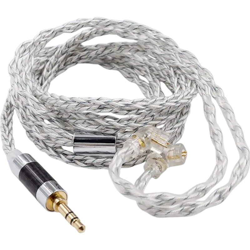 Cable de audio KZ Silver con tecnología híbrida 2GEN, diseñado para ofrecer una transmisión de sonido de alta fidelidad con conectores robustos de 3.5 mm y material de cobre plateado.