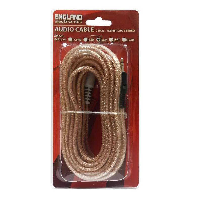 CABLE DE AUDIO TRANSPARENTE, 2 PLUG RCA A PLUG 3.5MM, CCS/CCA, 5MTS