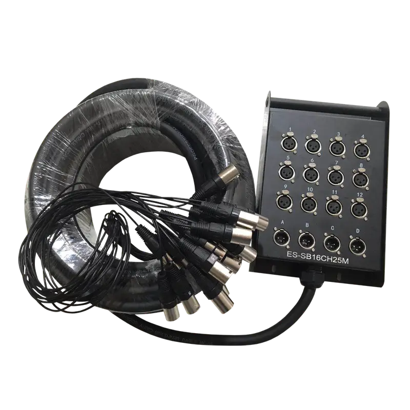 CABLE MEDUSA CON CAJA PARA ESCENARIO, 16 CANALES, (12 HEMBRAS XLR+ 4 MACHO XLR), 25 MTS
