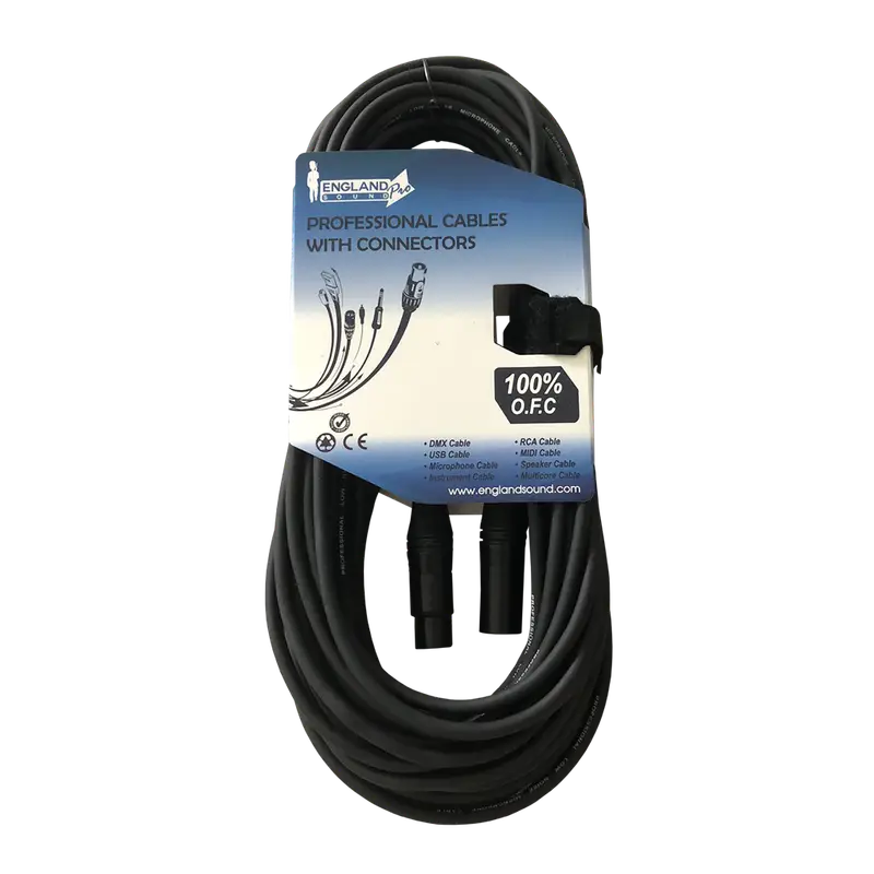 Cable XLR de alta calidad para transmisión de señales y conexión de equipos de sonido en estudios y escenarios, fabricado en cobre libre de oxígeno con conectores metálicos.