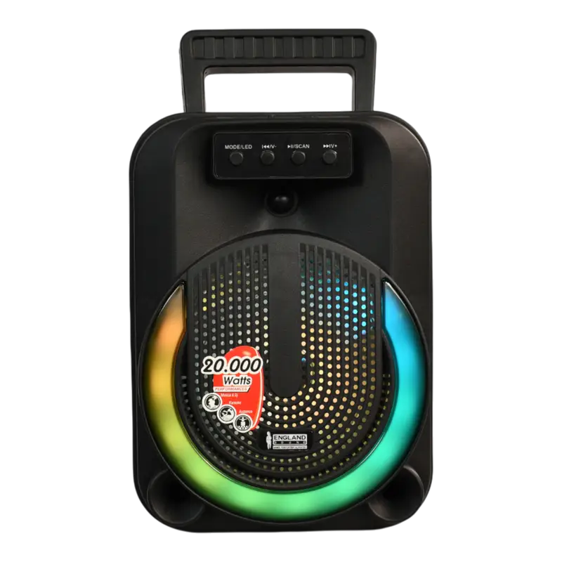 CAJA AMPLIFICADA CON BATERIA 6.5 PULG., 10.000W PMOP, REPRODUCTOR ANALOGICO DIGITAL, ENTRADA MIC 1/4, 3.5MM , EFECTO ECO, LUZ LED RGB, INCLUYE UN MICROFONO