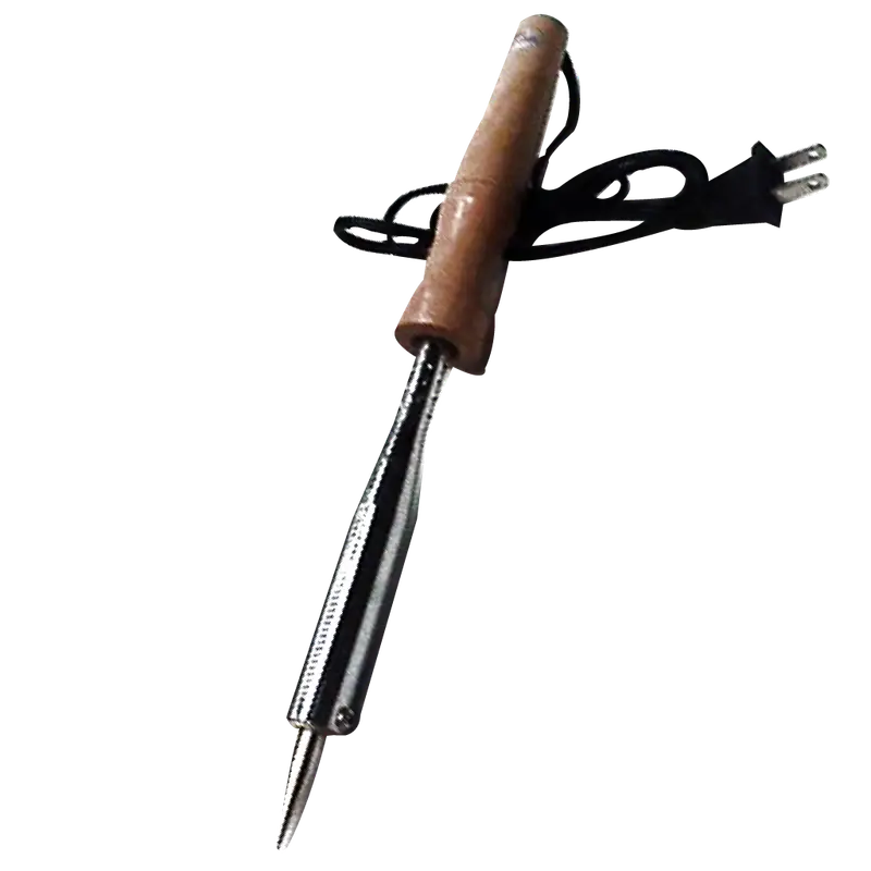 Pistola de soldar de alta precisión con cuerpo de metal y mango de madera, ideal para ensamblaje de circuitos y soldadura de precisión.