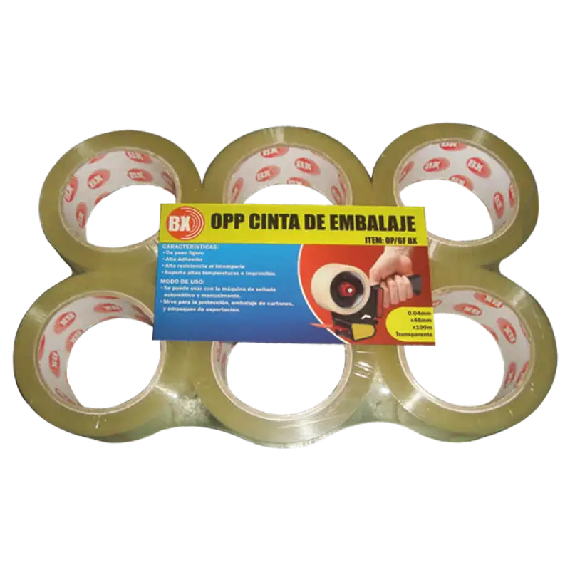 CINTA DE EMBALAJE TRANSPARENTE, PAQUETE X 6 PCS