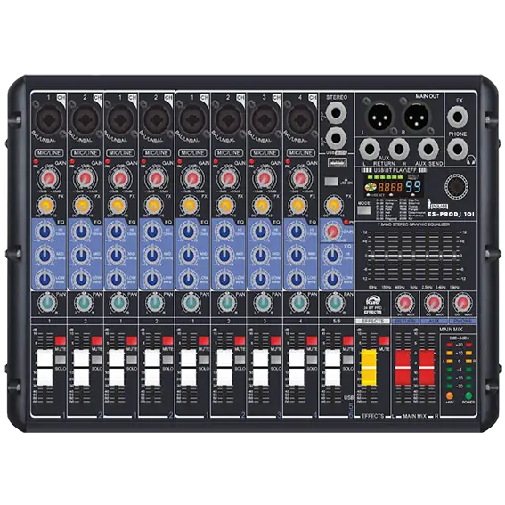 Consola Análoga, 10 Canales, 8 Mono/1 Estéreo, Interfaz Usb, Bt, Mp3, ES-PRODJ 10I