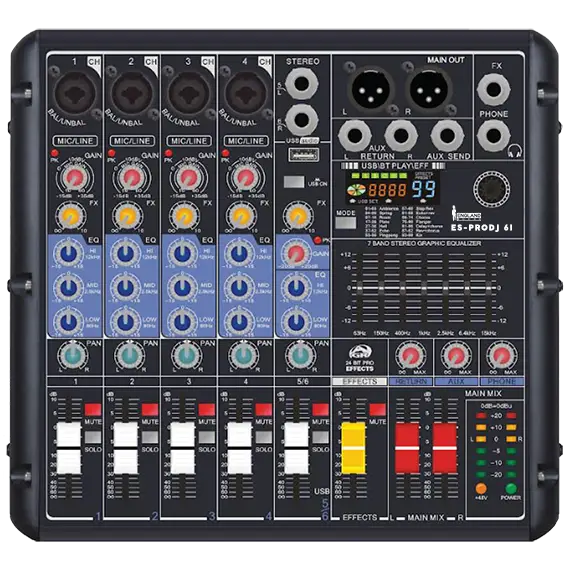 Consola Análoga, 6 Canales, 4 mono/1 Estéreo, Interfaz Usb, Bt, MP3, ES-PRODJ 6I