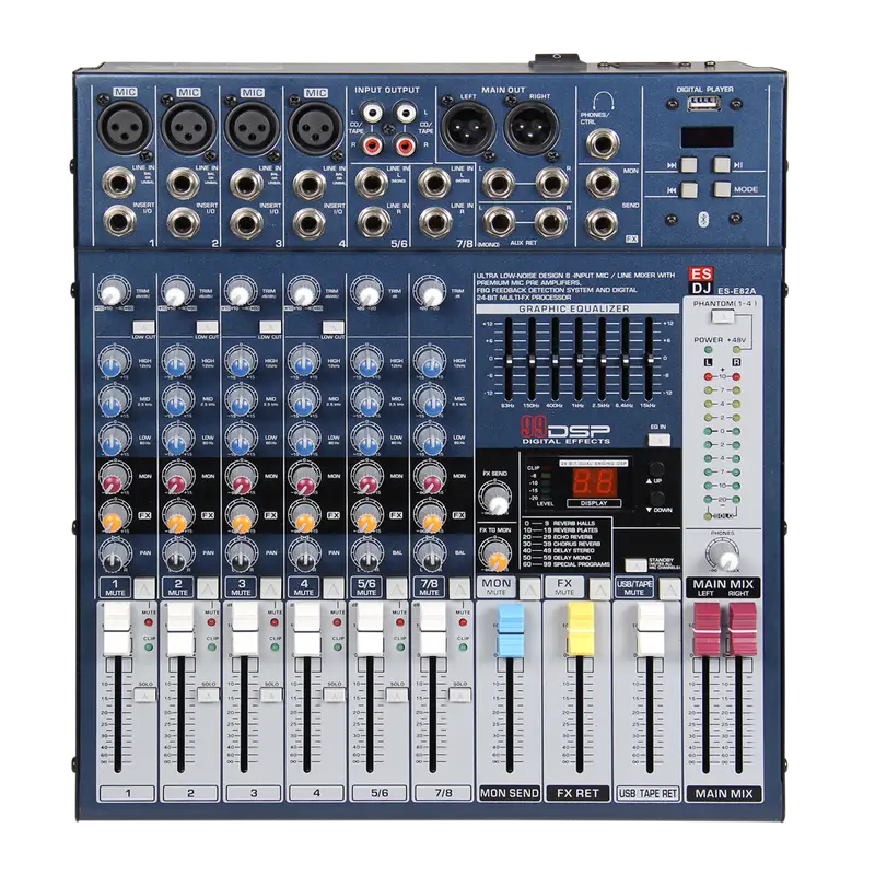 CONSOLA ANALOGA, 8 CANALES, 4 MONO/2 ESTEREO, INTERFAZ USB, BT, MP3