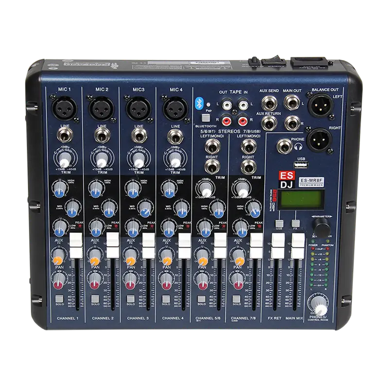 England Sound, Consola de audio de 8 canales, Interfaz USB, Ecualizador de 3 bandas, ES-MR8FI