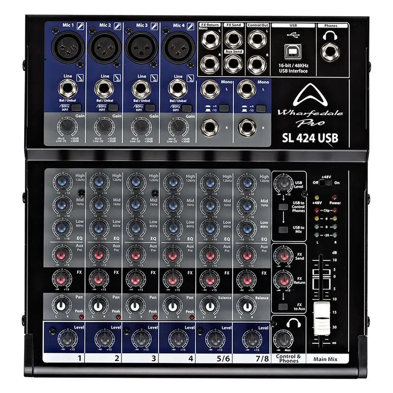 Consola Análoga, 8 Canales, 4 Mono/2 Estéreo, Interfaz Usb, SL424USB