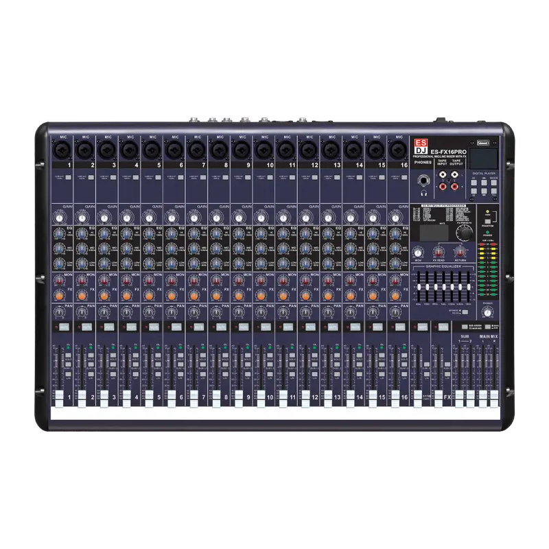 Consola Analógica 16 Canales, Bluetooth, 2 Gráfico de 7 Bandas, Eq, Interfaz Usb, ES-FX16I