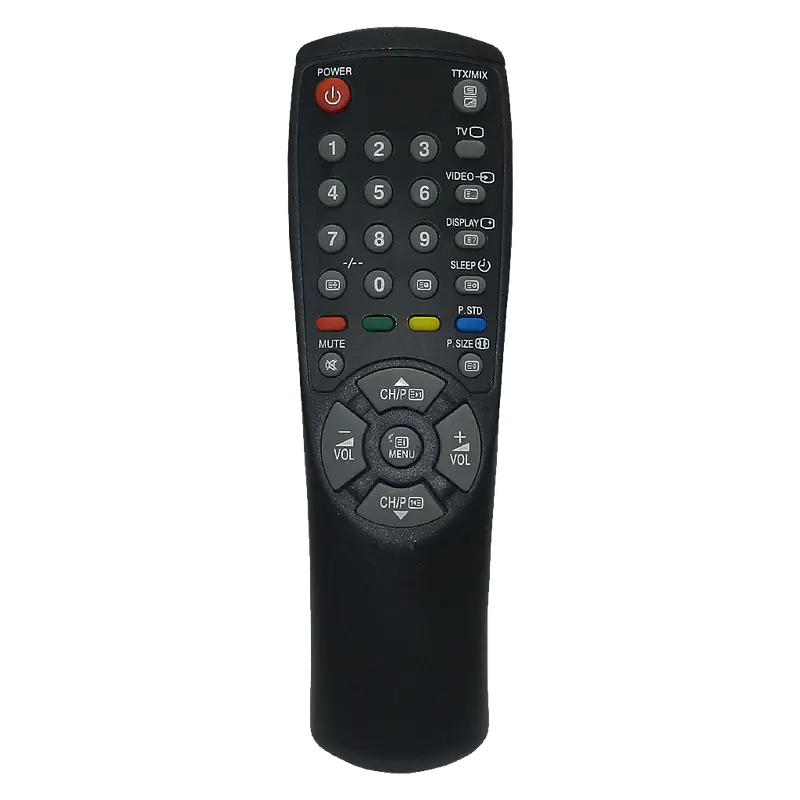 Control remoto específico para TV Samsung, fabricado en plástico ABS, ideal para la integración de sistemas de entretenimiento y manejo a distancia.
