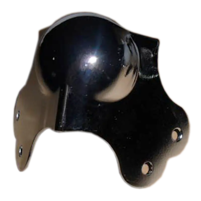Esquinero metálico con mango, ideal para protección y manejo de cajas acústicas y racks, compatible con estructuras de gabinetes, acabado cromado.
