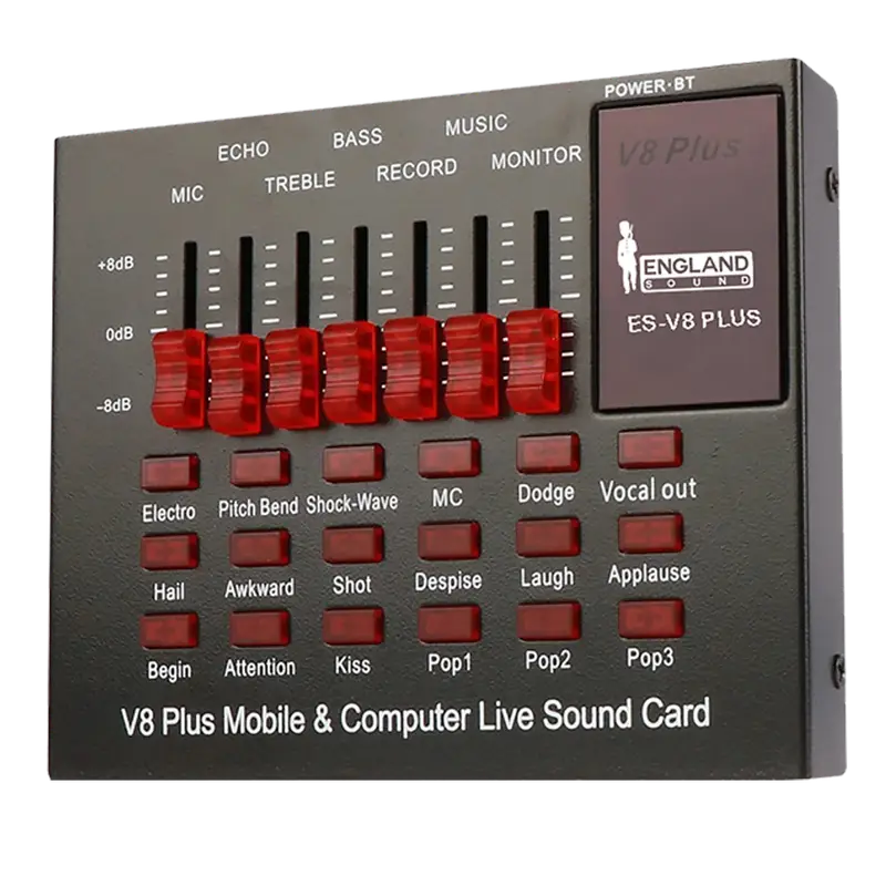 Consola de Audio Profesional ESV8 PLUS Resumen técnicocomercial: Consola digital compacta con 8 canales, interfaz USB, efectos integrados, ideal para eventos en vivo y estudios.