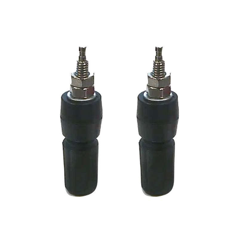 Conector tipo Banana de chasis en color negro, fabricado en metal, ideal para transmisión de señales y conexiones de audio.