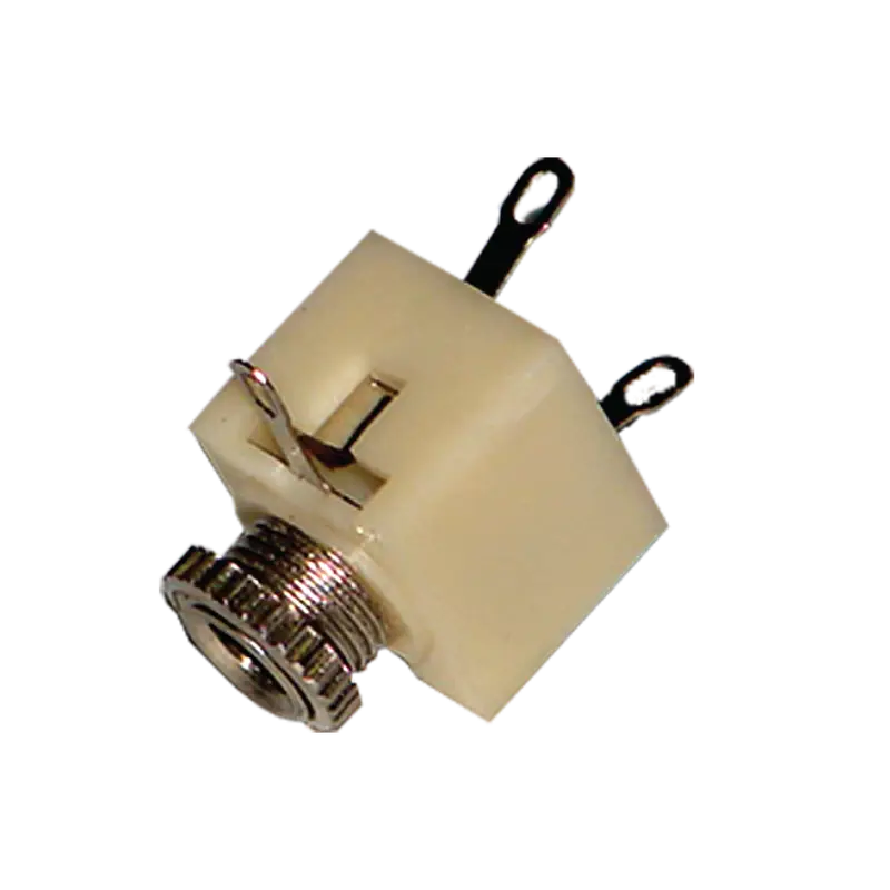Conector Jack de 3.5mm monofónico de chasis, fabricado en plástico ABS, ideal para transmisión de señales de audio y conexiones de datos.