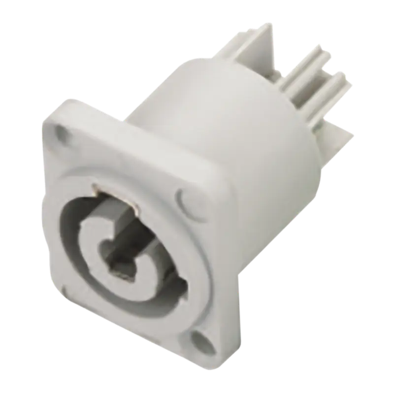 Conector Powercon de 4 pines en aleación de PA, ideal para transmisión de señales y alimentación eléctrica en equipos de audio e iluminación.