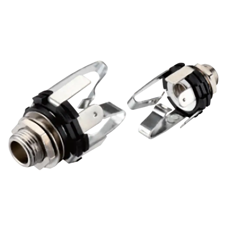 Conector Jack 1/4" monofónico de baquelita para transmisión de señales de audio, robusto y duradero, ideal para sistemas de sonido profesional.