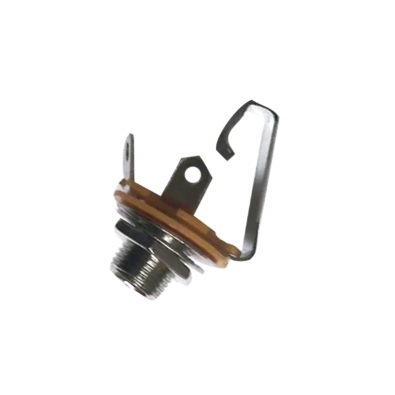Conector Jack 1/4" mono para chasis, fabricado en metal resistente, ideal para transmisión de señales de audio y conexiones robustas en equipos profesionales.
