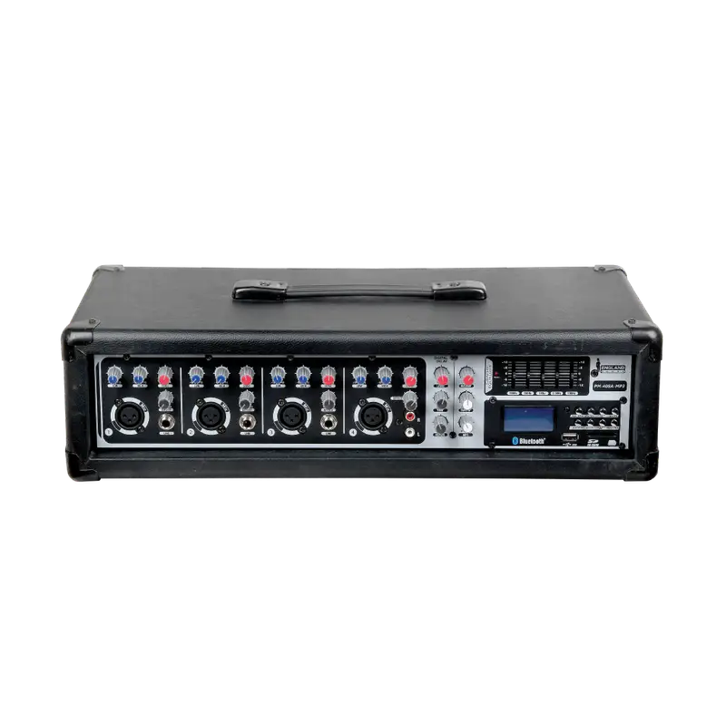 MEZCLADORA AMPLIFICADA, 4 CANALES, 100W, USB, SD CARD, BT, MP3, 4 OHM