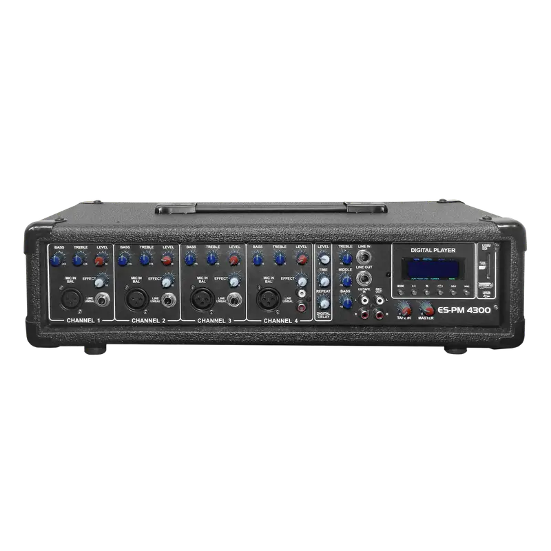 MEZCLADORA AMPLIFICADA, 4 CANALES, 80W, ECUALIZADOR, USB, SD, XLR