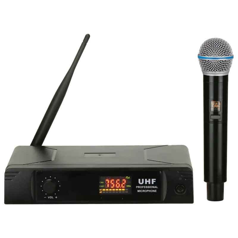 MICROFONO INALAMBRICO UHF MULTIFRECUENCIA, 1 CANAL, DE MANO, FRECUENCIA FIJA