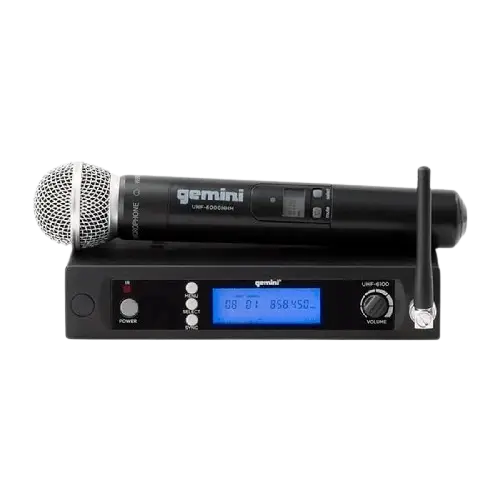 Resumen técnicocomercial: Micrófono inalámbrico UHF con patrón polar unidireccional, ideal para escenarios y conferencias, asegurando claridad y estabilidad de señal.
