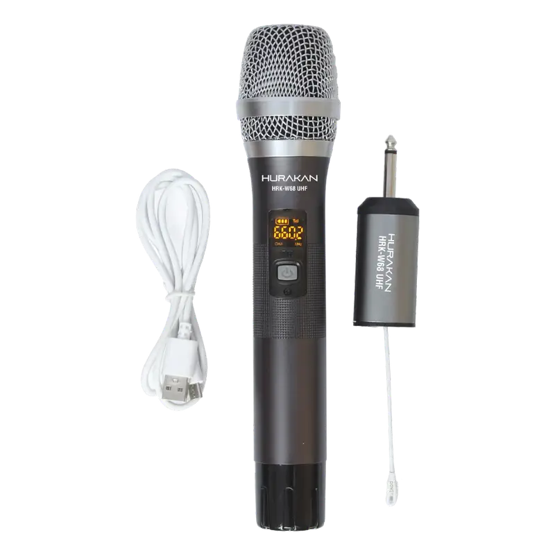MICROFONO INALAMBRICO UHF MULTIFRECUENCIA, 1 CANAL, DE MANO, RECEPTOR PORTATIL RECARGABLE