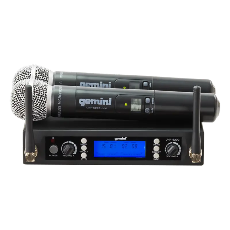 Micrófono Inalámbrico Uhf Multifrecuencia 512-537.5 Mhz, 2 Canales, de Mano, Carcasa Metálica, UHF-6200M-R2