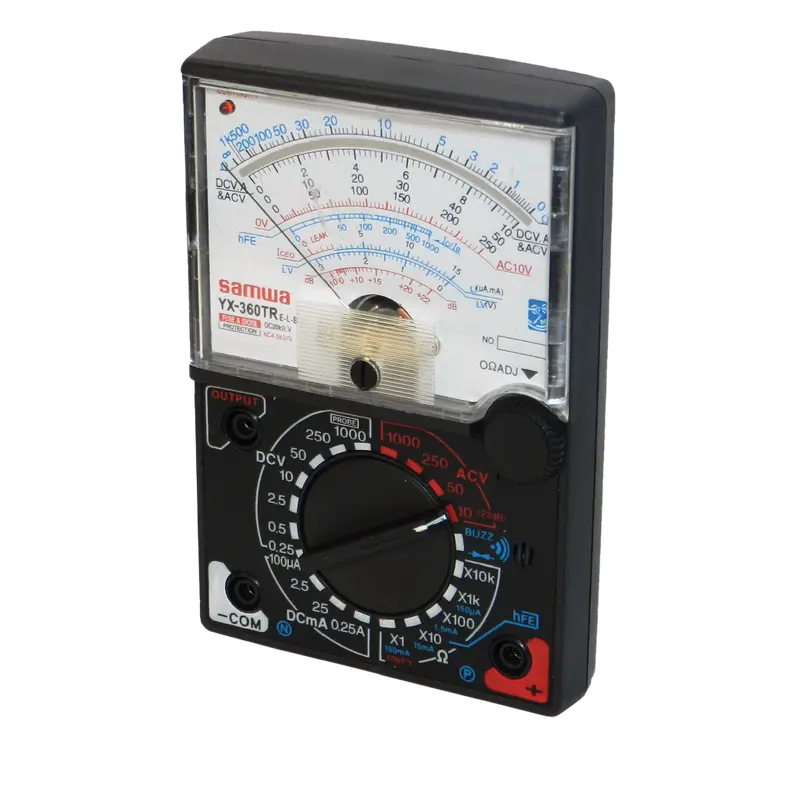 Multímetro analógico profesional en carcasa de plástico ABS para diagnóstico eléctrico, medición de corriente y prueba de cables.