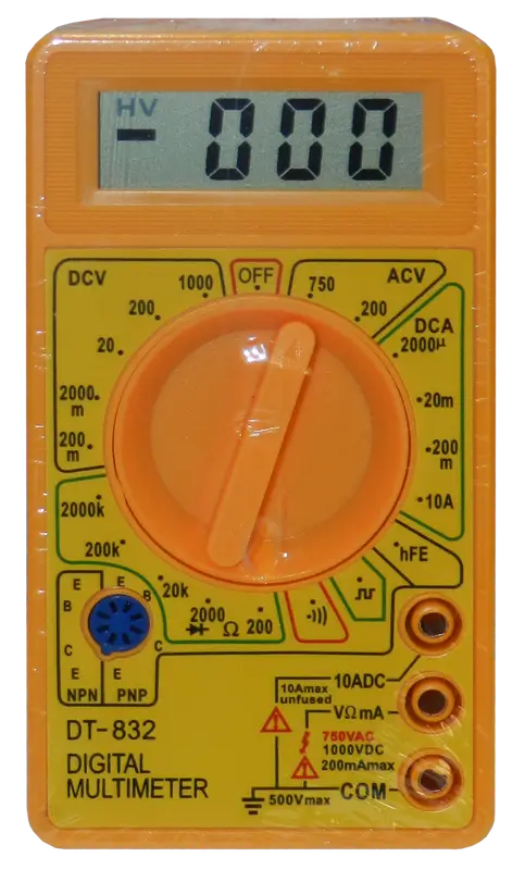 Multímetro digital robusto en plástico ABS, ideal para diagnóstico eléctrico, medición de corriente y análisis de señales.