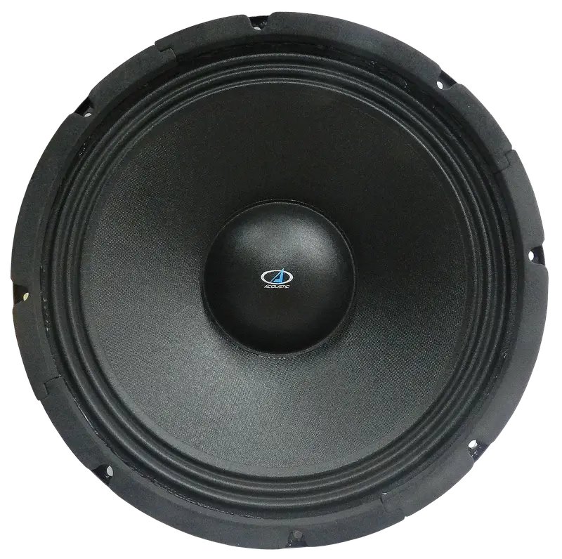 Parlante profesional tipo woofer de 12 pulgadas, diseñado para refuerzo sonoro, fabricación y reparación de cajas acústicas, ideal para uso en escenarios y instalaciones fijas.