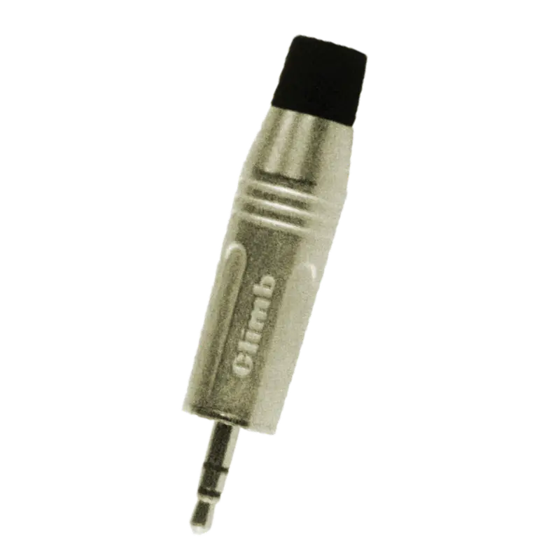 Conector Jack 3.5mm estéreo, fabricado en metal niquelado, ideal para transmisión de señales de audio y datos.