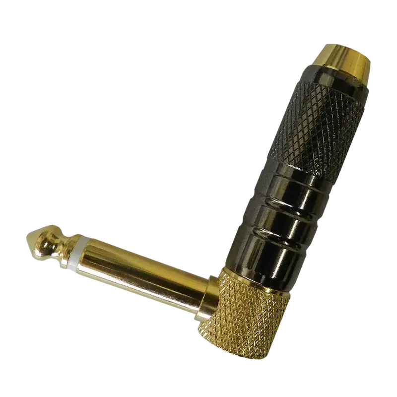 PLUG 6.3MM DORADO, MONO, TIPO L SIN RESORTE, NEGRO, METALICO