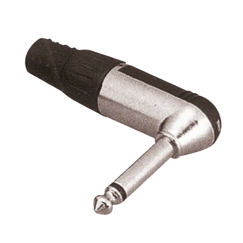 Conector tipo Plug 1/4" mono, fabricado en metal niquelado, ideal para transmisión de señales de audio y conexiones robustas en sistemas profesionales.