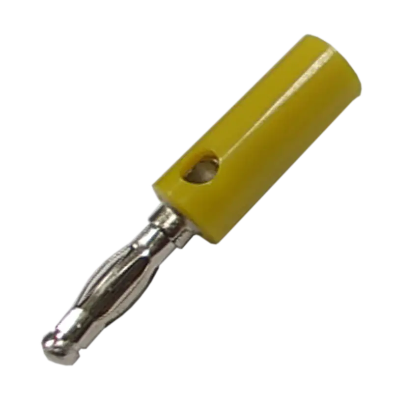 Conector tipo banana de plástico ABS amarillo para transmisión de señales y conexiones de audio.