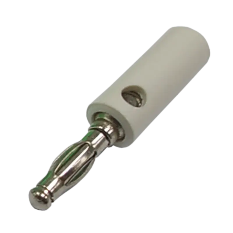 PLUG BANANA PLATEADO, BLANCO, PLASTICO