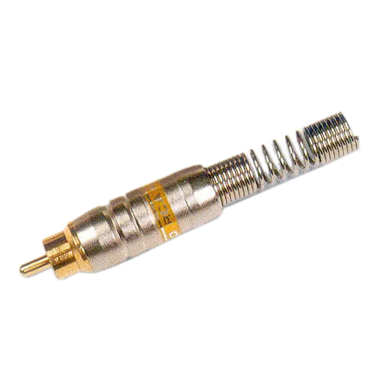 Conector RCA de metal dorado, ideal para transmisión de señales de audio y conexiones de alta fidelidad.