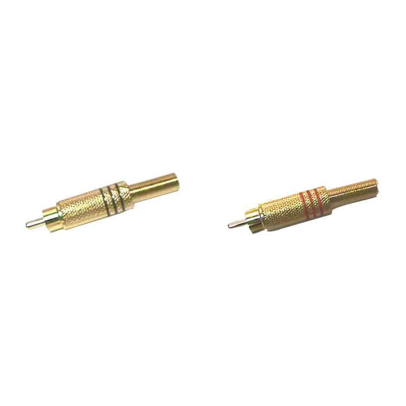 PLUG RCA DORADO, CON RESORTE, ROJO/NEGRO, METALICO