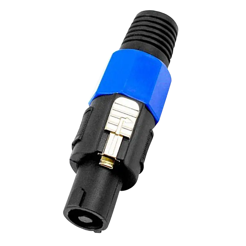 Adaptador de audio tipo Speakon de 2 vías, diseñado para conexiones seguras y eficientes en aplicaciones de sonido profesional, tanto en vivo como en estudio.