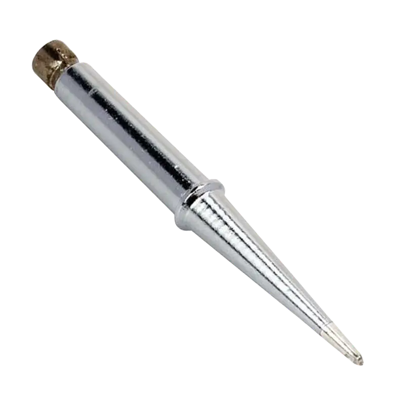 Punta para cautín de cobre sólido niquelado, ideal para ensamblaje de circuitos y soldadura precisa en componentes electrónicos.