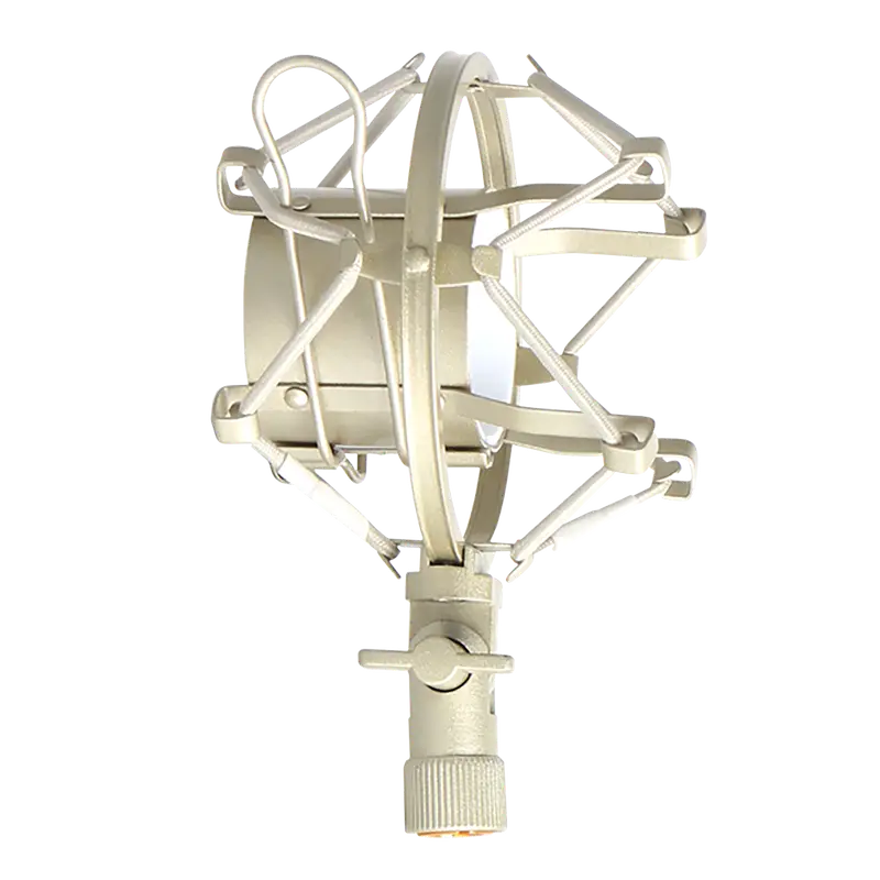 Soporte tipo araña para micrófono, ideal para grabaciones en estudio con micrófonos de condensador, ofrece excelente reducción de ruido y estabilidad.