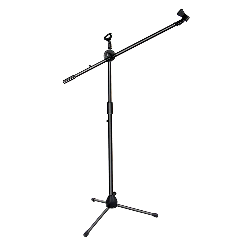 SOPORTE DE PISO BASE TRIPODE PARA MICROFONO CON BOOM Y 2 SUJETADORES, ALTURA 85-167CM